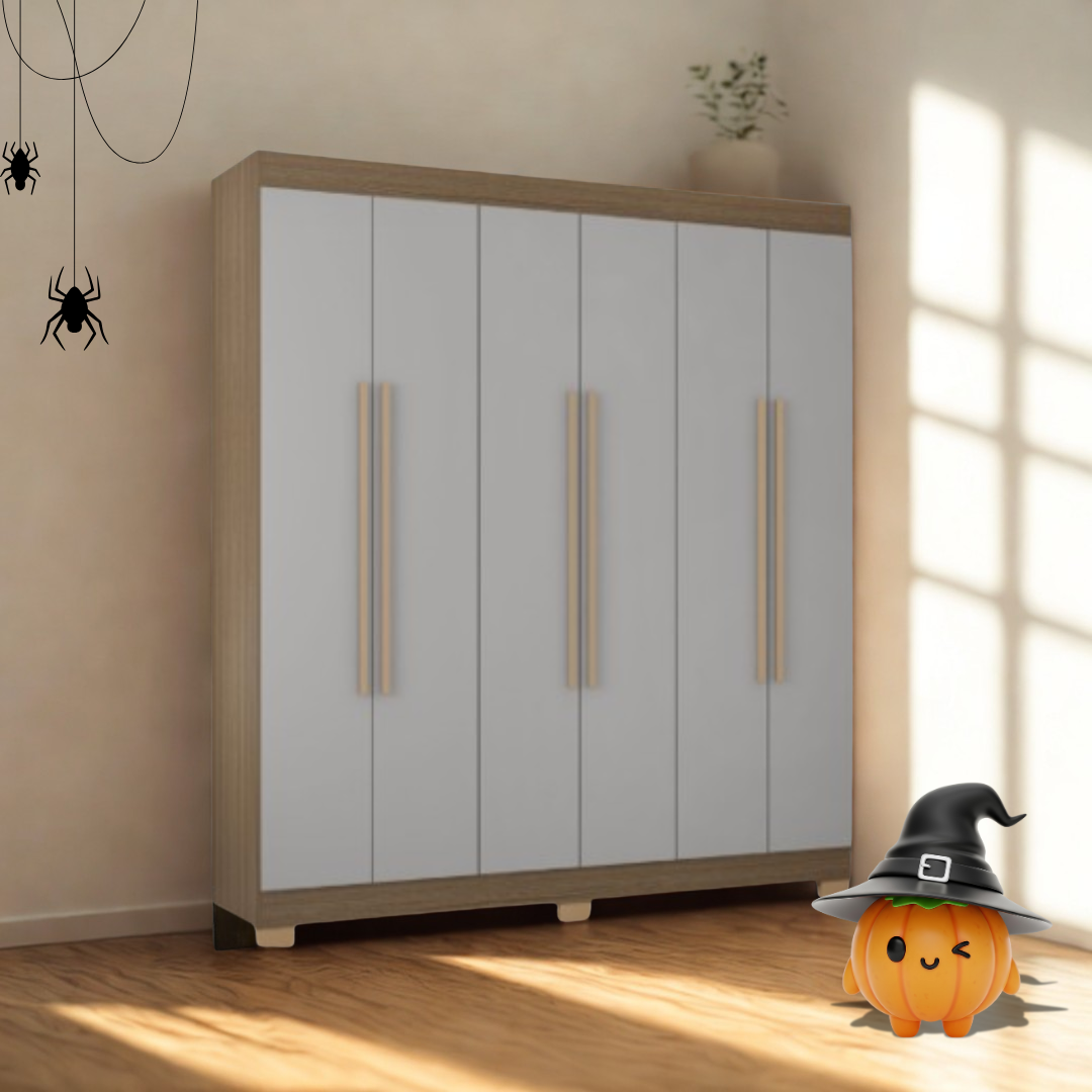 Ropero Barcelona 6 puertas, 2 cajones exteriores con amplio espacio de guardado.