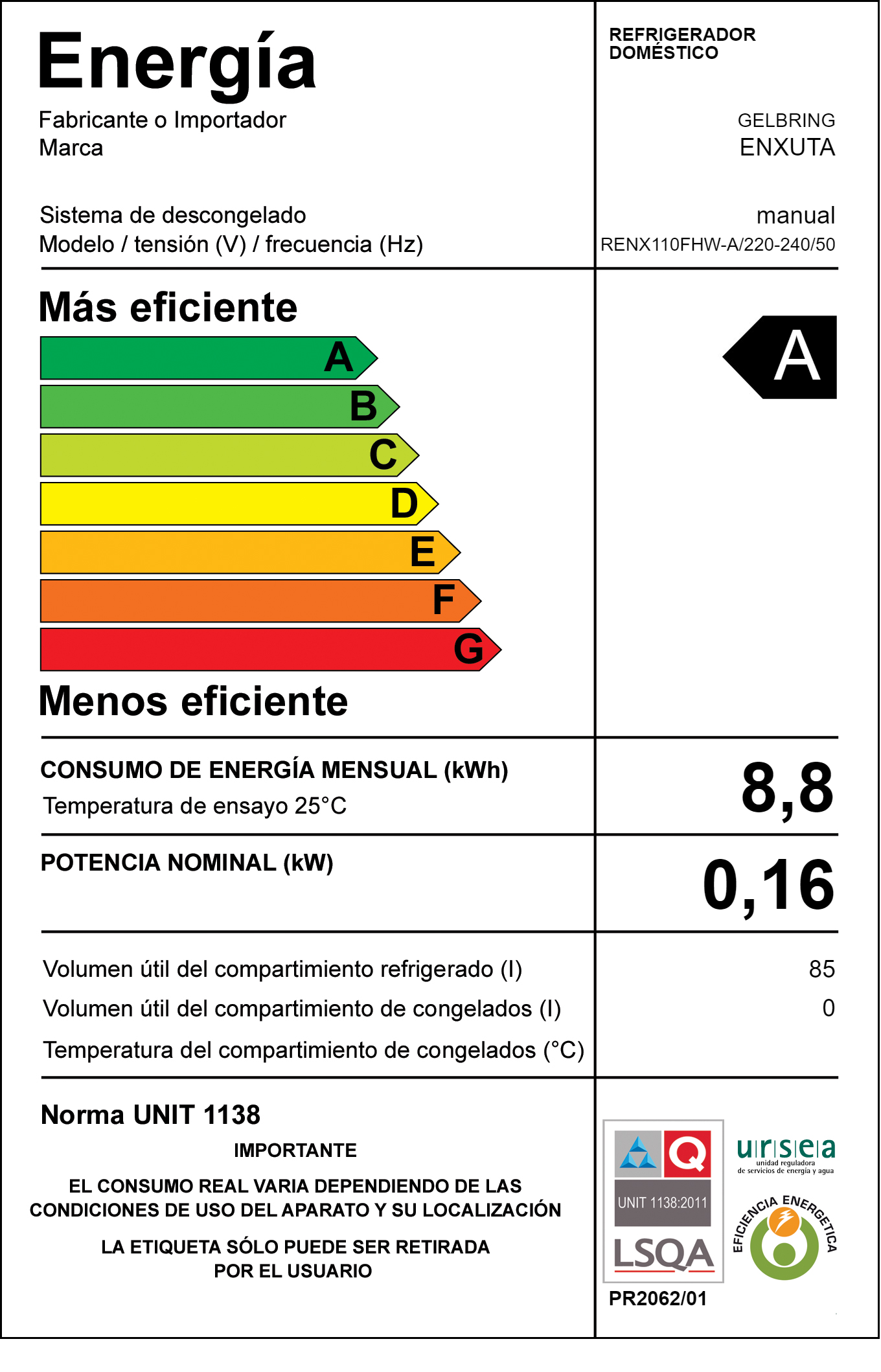 Capacidad Total: 85 Lts