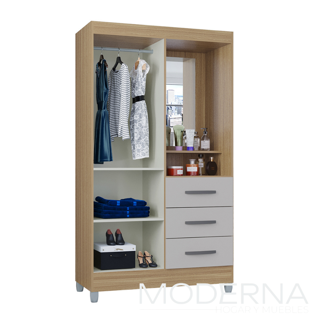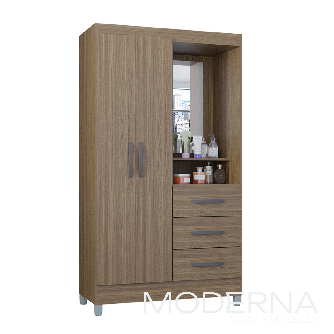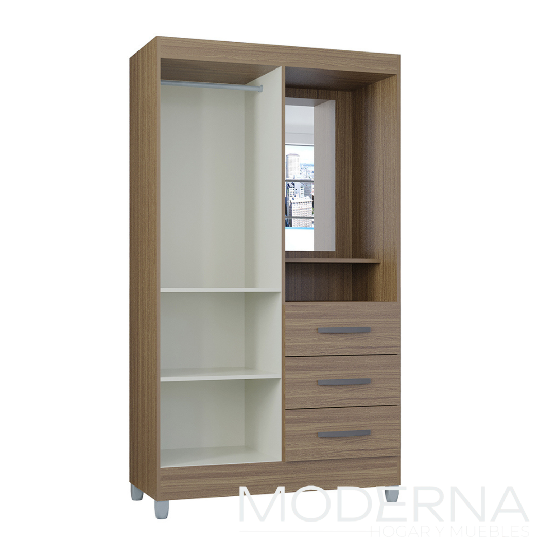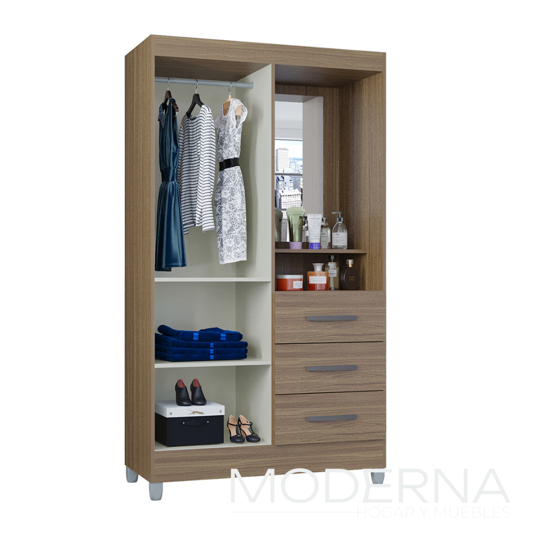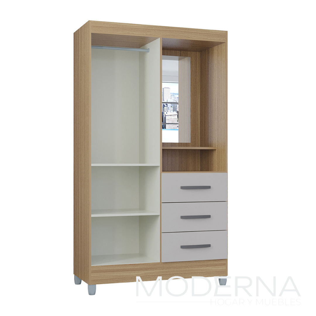 Ropero madri 2 puertas, 3 cajones y espejo. Diseño compacto y funcional ideal para espacios reducidos.