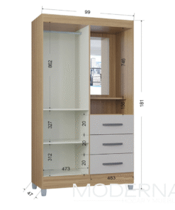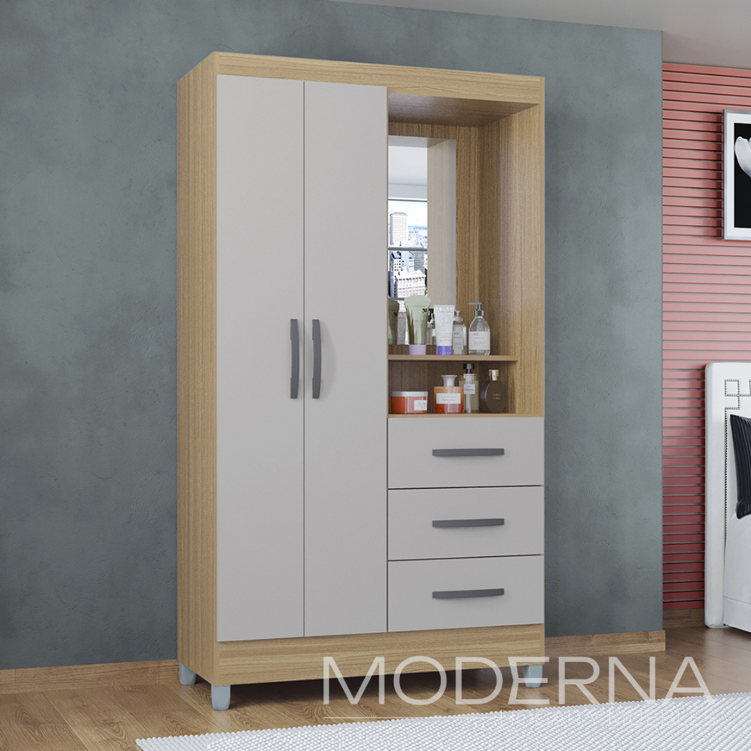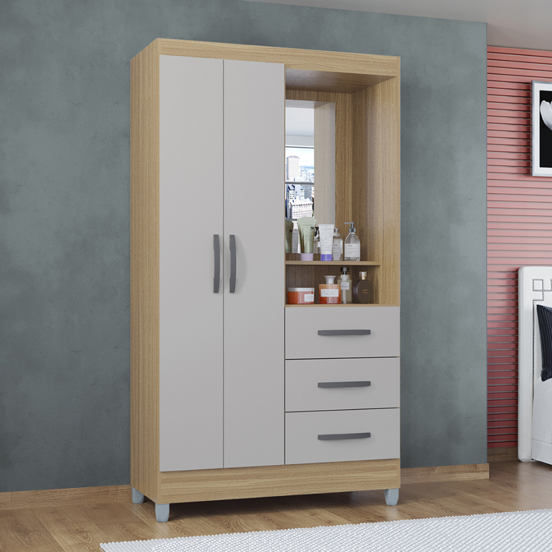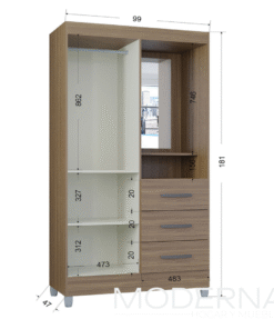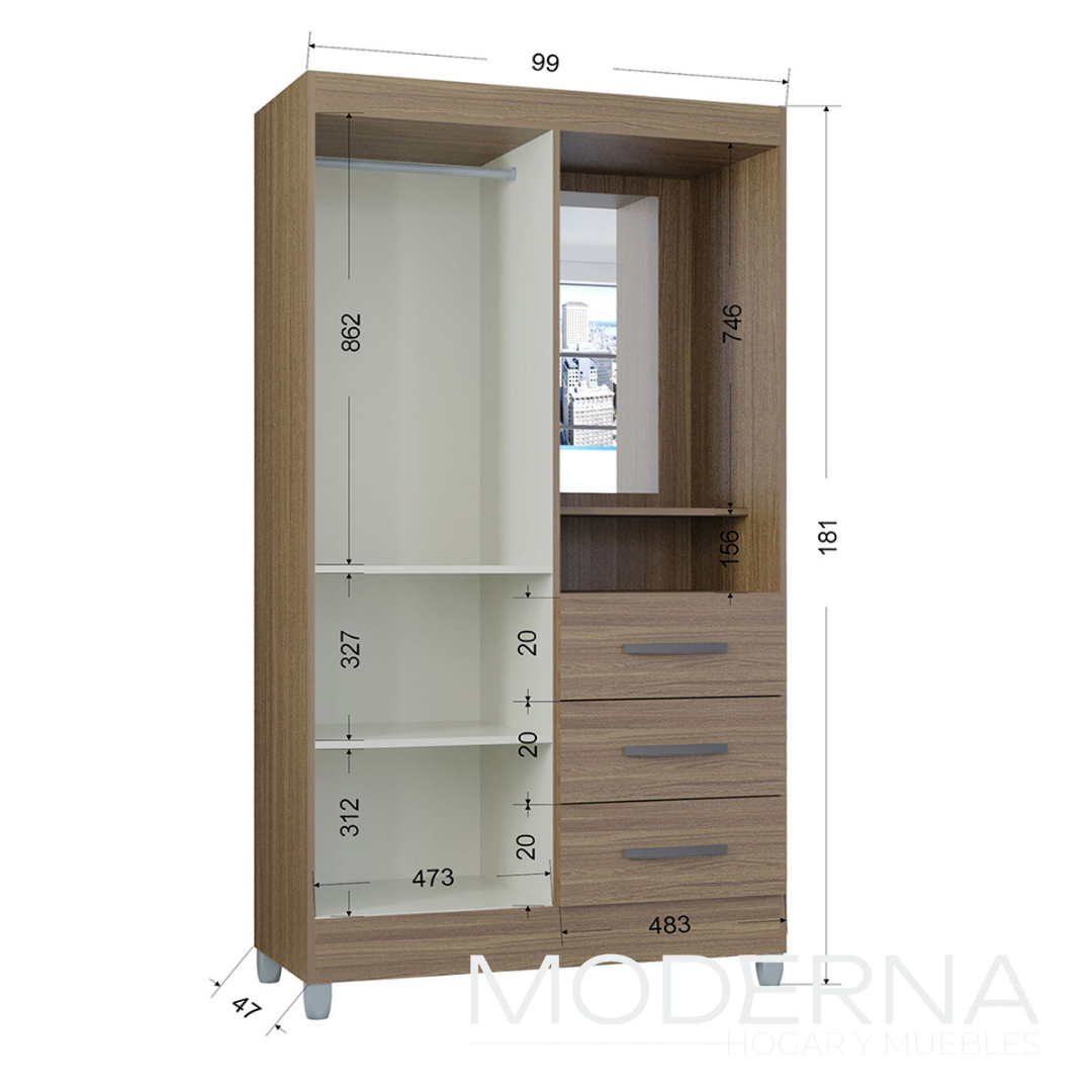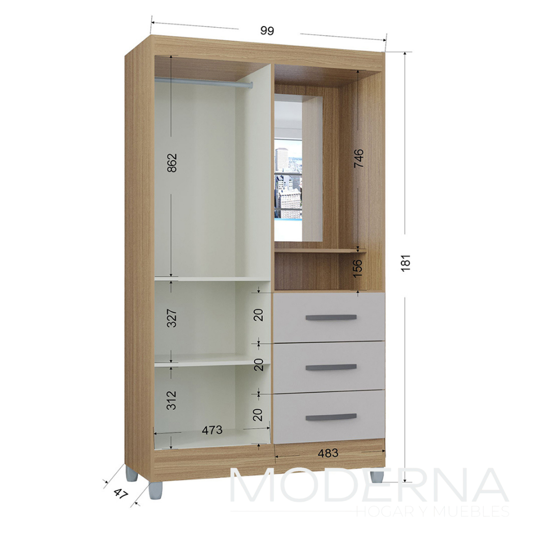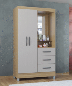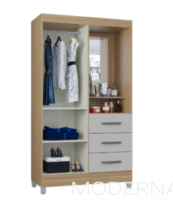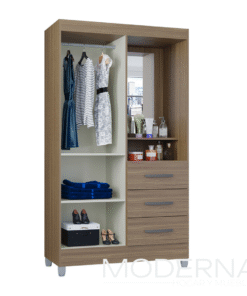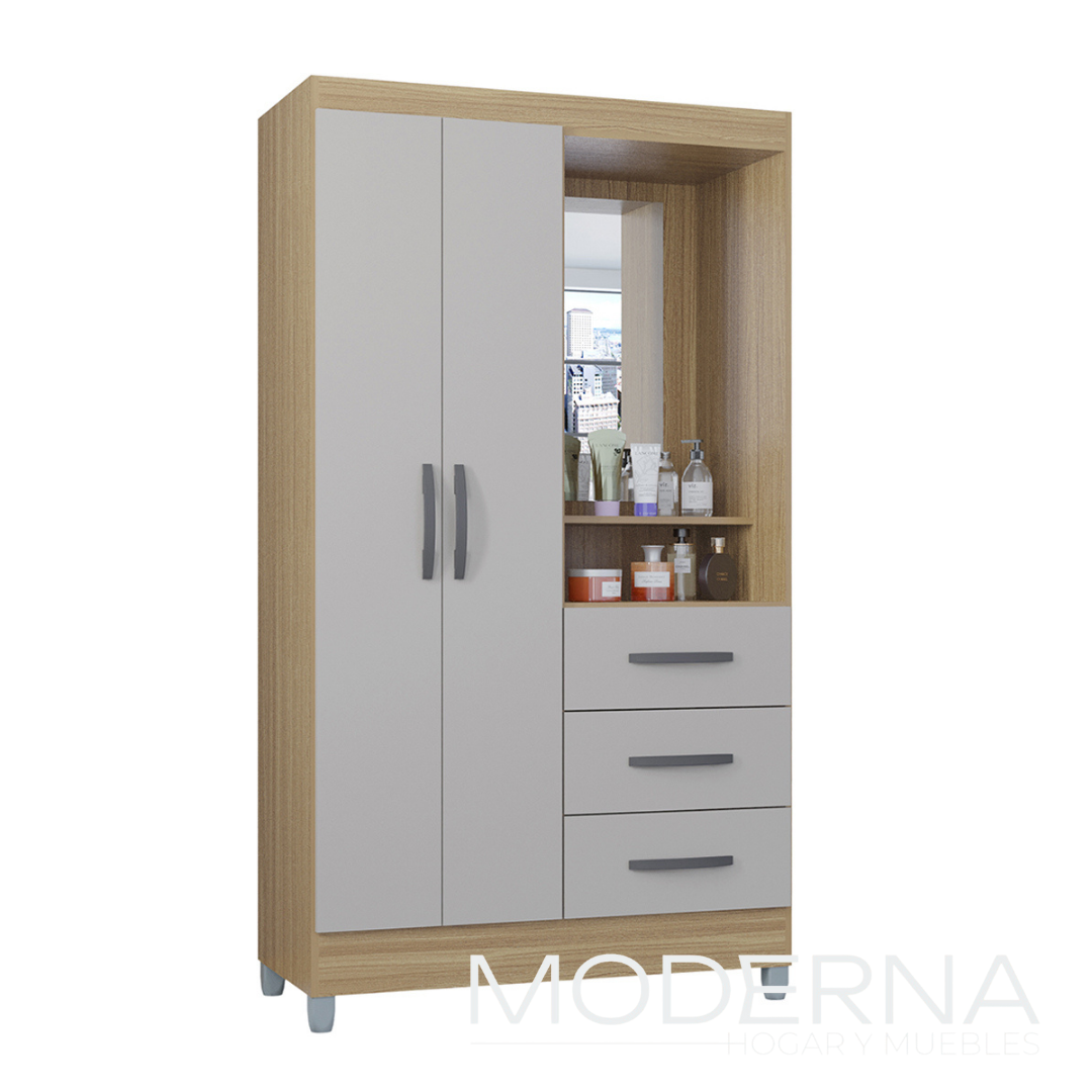 Ropero madri 2 puertas, 3 cajones y espejo. Diseño compacto y funcional ideal para espacios reducidos.