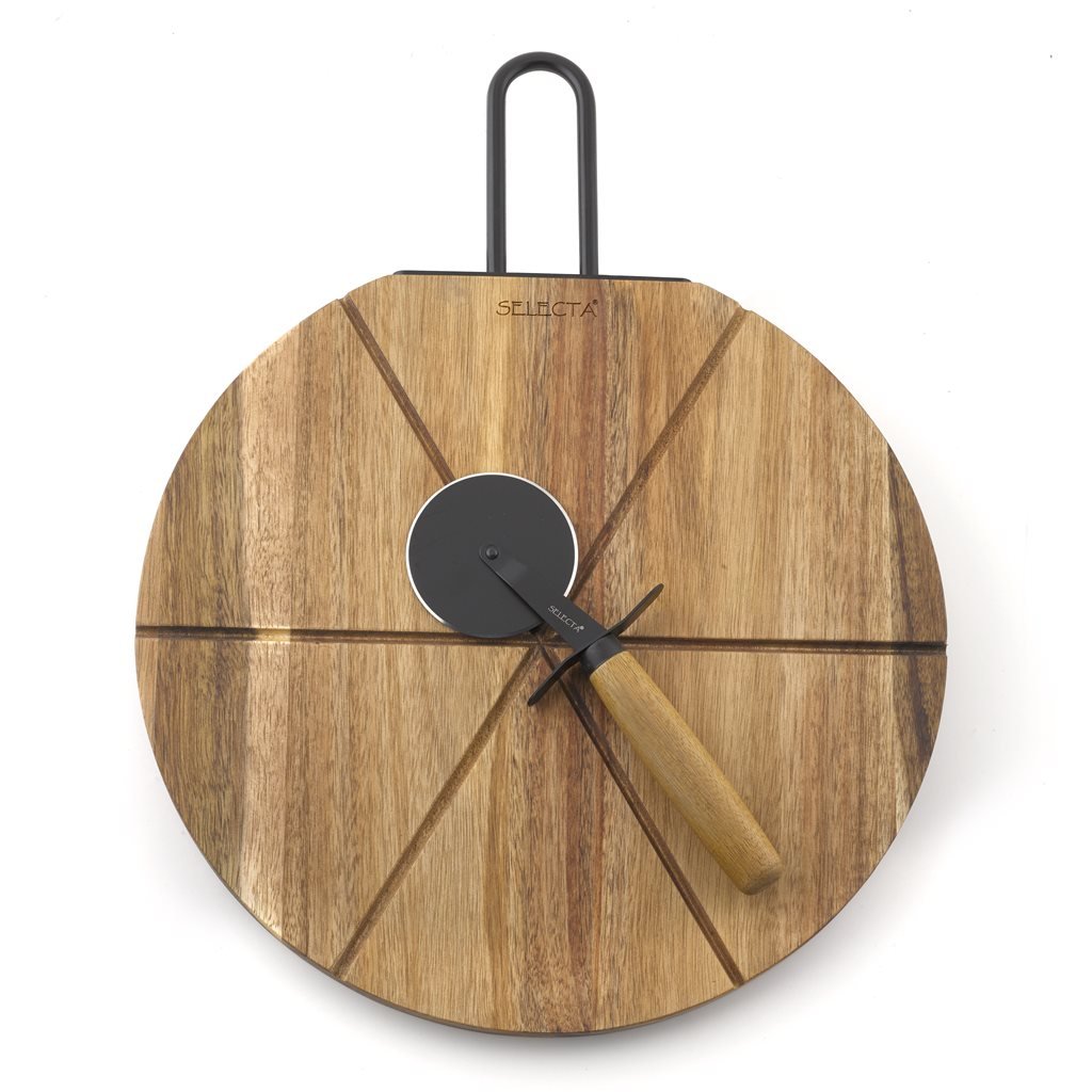 Set tabla madera acacia con cortador pizza