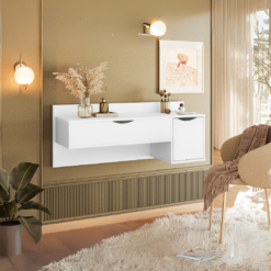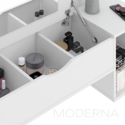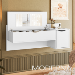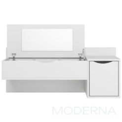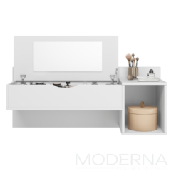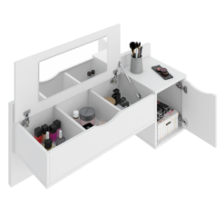 Tocador blush , con espejo en tapa de guardado y puerta lateral.